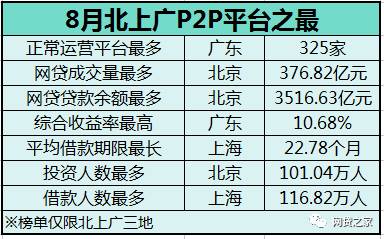 • 8月北上廣P2P平臺之最:廣東收益率最高,三地問題平臺數大降